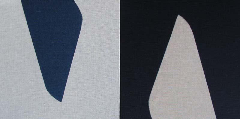 Dittico, 2011, acrilico su juta bianca e blu tamburata, cm. 80×160