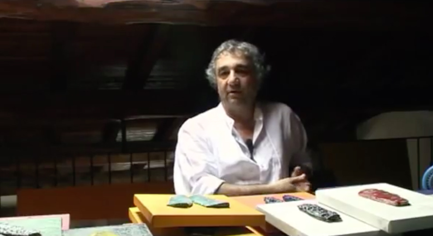 Generatore, 2000, ceramica e acrilico su juta gialla su tavola cm.50×40