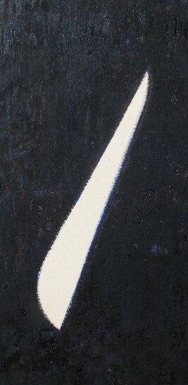 Aperta, 2010, acrilico su juta nera intelata, cm.85×30