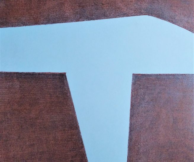 dittico, 2018, linoleografia e pastello su carta, cm.50×23
