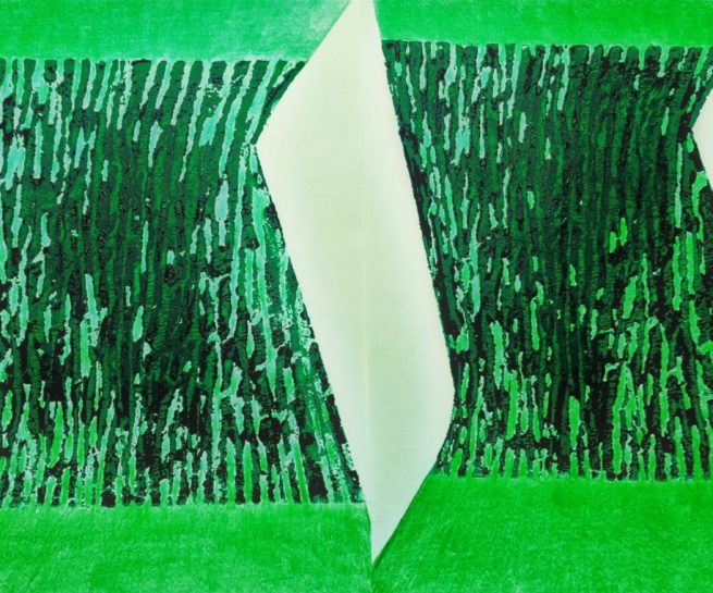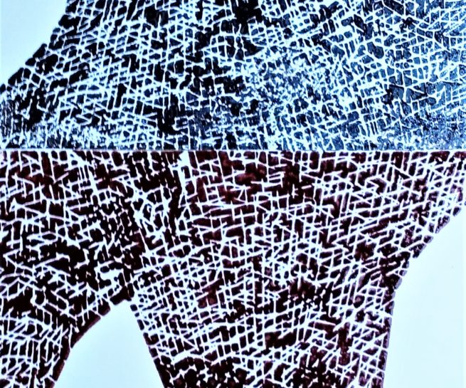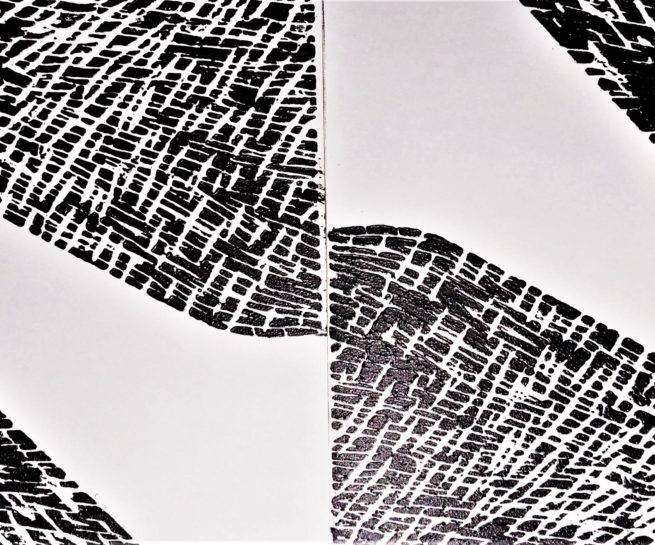 dittico, 2018, linoleografia su carta, cm. 65×25